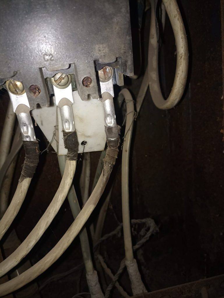 имееется автомат АЕ чёто там на 100 А, с раздолбанной резьбой на затяжной гайке и прожаренным от этого карболитом на корпусе, ну и потекшая изоляция на отходящей жилы фазы С, смысла восстанавливать не вижу, меняем чёрту, в наличии в магазинах имеется ВА 88-32, да и на соседний стояк я устанавливал такой же, поэтому решено -берём